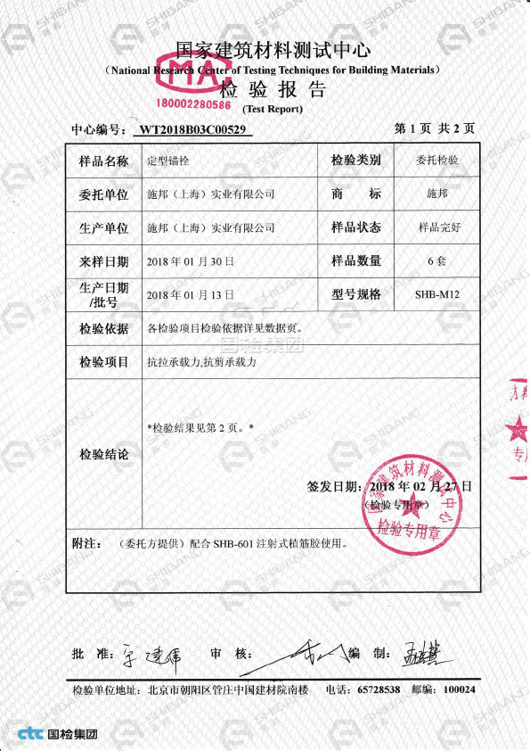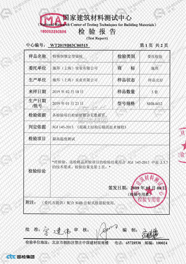 施邦研發(fā)出了特殊倒錐定型錨栓的專用植筋膠