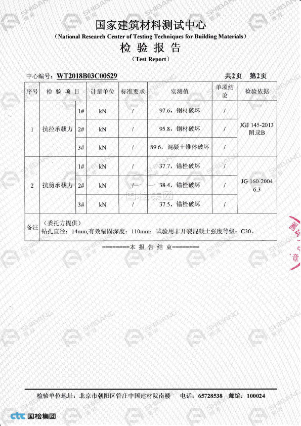 表格未列出的產(chǎn)品,請(qǐng)參照《JGJ145-2013混凝土結(jié)構(gòu)后錨固技術(shù)規(guī)程》按照承載力極限狀態(tài)計(jì)算方式得出相應(yīng)數(shù)據(jù),具體方案請(qǐng)咨詢施邦 (上海) 實(shí)業(yè)有限公司技術(shù)部