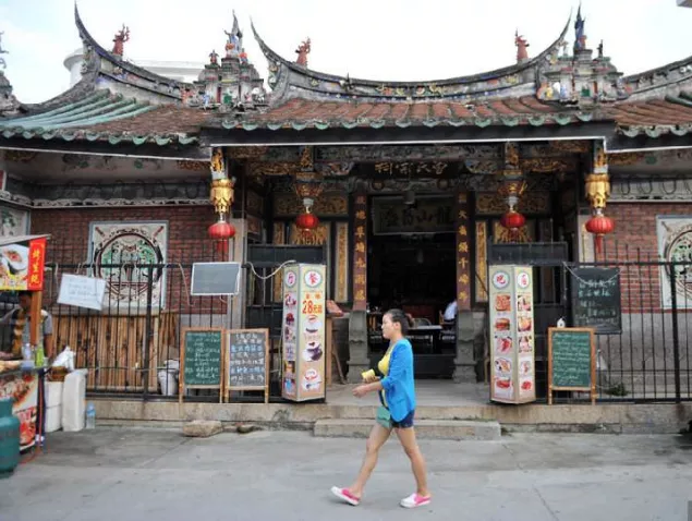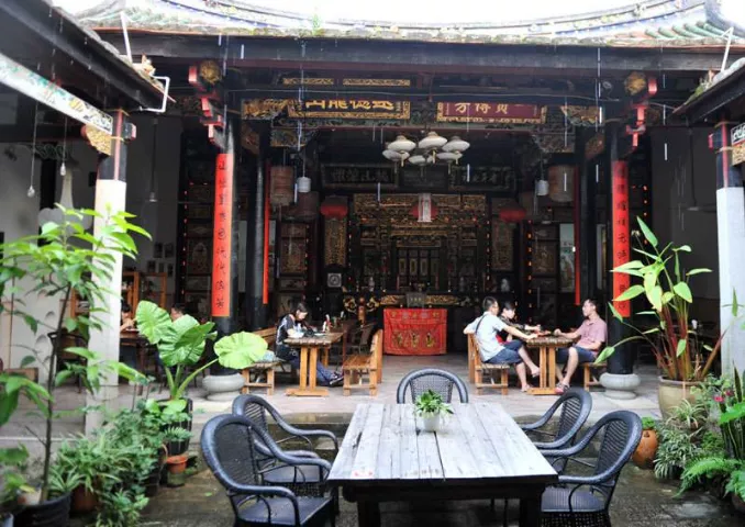 廈門曾厝垵曾氏宗祠是座具有閩南特色的祠堂,依舊高懸牌匾,供奉著木雕朱漆描金的祖宗牌位,但新添了吧臺紅酒、木桌藤椅之后,就搖身變成一家時尚咖啡館。據(jù)說過去每逢清明和冬至,曾氏族人都會聚集在宗祠祭祖,除此之外大門緊閉。而海邊的房屋一旦久無人住,就容易生白蟻、結(jié)蛛網(wǎng),祠堂理事會于是就有了“把宗祠利用起來”的想法。咖啡館負(fù)責(zé)人說他只做了“加法”,沒有破壞宗祠原有的任何東西,像在宗祠這樣的開放式空間無法安裝空調(diào),設(shè)計者便在屋頂上安裝噴淋系統(tǒng),啟動開關(guān)后,細(xì)密的水霧就籠罩整個老厝,降溫效果還不錯。