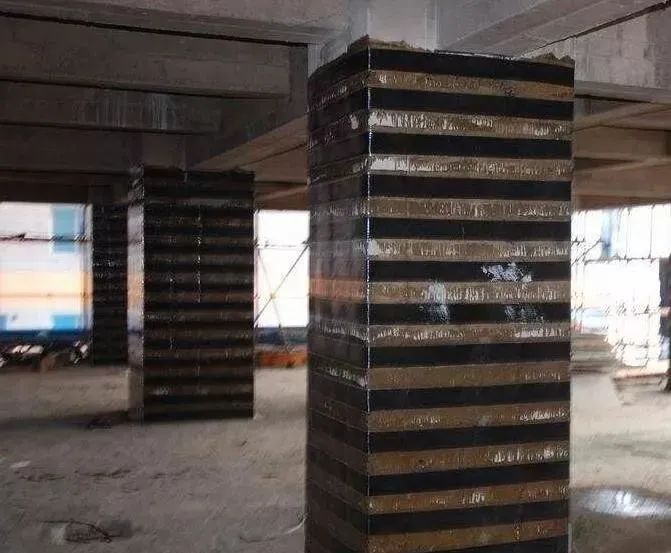 目前,最常用的抗震加固方法是沿柱環(huán)向外貼碳纖維布,環(huán)向粘貼的碳纖維布可看作附加箍筋,約束混凝土的橫向變形,從而提高混凝土柱的延性。也可采用外貼縱向碳纖維布來改善柱的抗震性能。采用碳纖維布加固柱可以顯著提高其抗震性能,加固方法主要有兩類:沿柱環(huán)向和縱向粘貼碳纖維布。