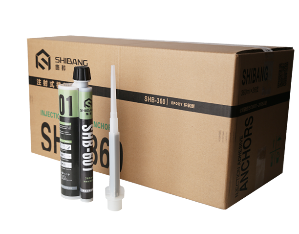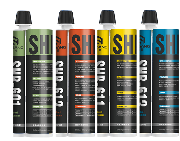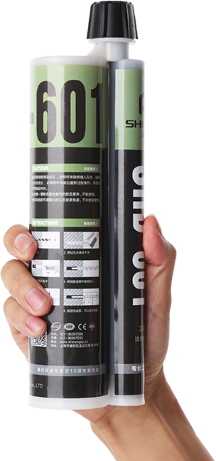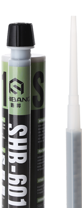 SHB-601注射式植筋膠(專業(yè)工程加強(qiáng)型)系A(chǔ)、B組分高強(qiáng)復(fù)合型環(huán)氧樹脂膠粘劑,使用專用的注射槍注射,兩組分在可更換的靜態(tài)混合器中充分混合直接注入鉆孔內(nèi)